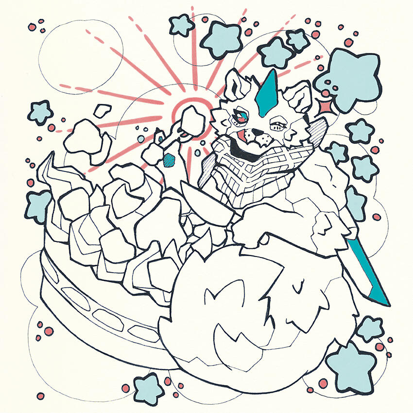 A yearly tradition to draw wolves on pride month in support of aspec identities.For 2022 I focused on using a limited colour palette, by only using the colours of the flag along with white and black.I. used screen tones and negative space to create cohesive graphical designs.
